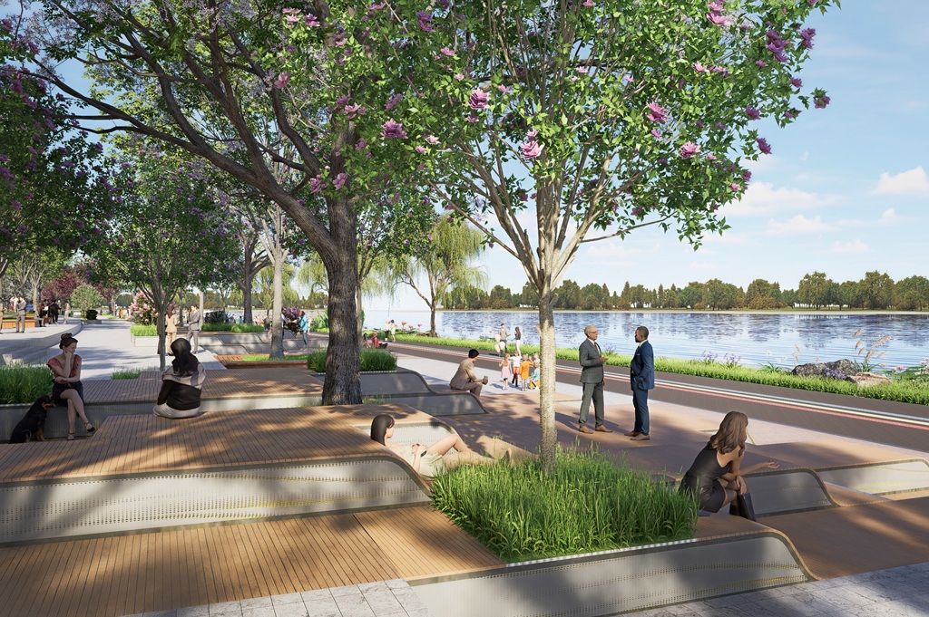 This project is the Outer Ring Road Greening Project for the Resilient City (Landscaping) around Zhengzhou North Longhu Financial Island, with a design scope of approximately 22.75 hectares surrounding the waterfront area of the island's outer ring. The project aims to establish a circular landscape system integrating “ecological resilience, urban vitality, and smart operation,”creating a green gateway and public living room for an international financial business district. With the overall vision of a “Forest in the Lake,”the design forms a landscape structure of “Two Rings, Six Corridors, Four Zones, and Multiple Nodes,” encompassing Urban Vitality Zone, Leisure & Entertainment Zone, Natural Healing Zone, and Business Image Zone. It integrates slow-traffic systems, waterfront spaces, smart facilities, and seasonal thematic activities, comprehensively enhancing the area's ecological value, spatial quality, and cultural appeal.