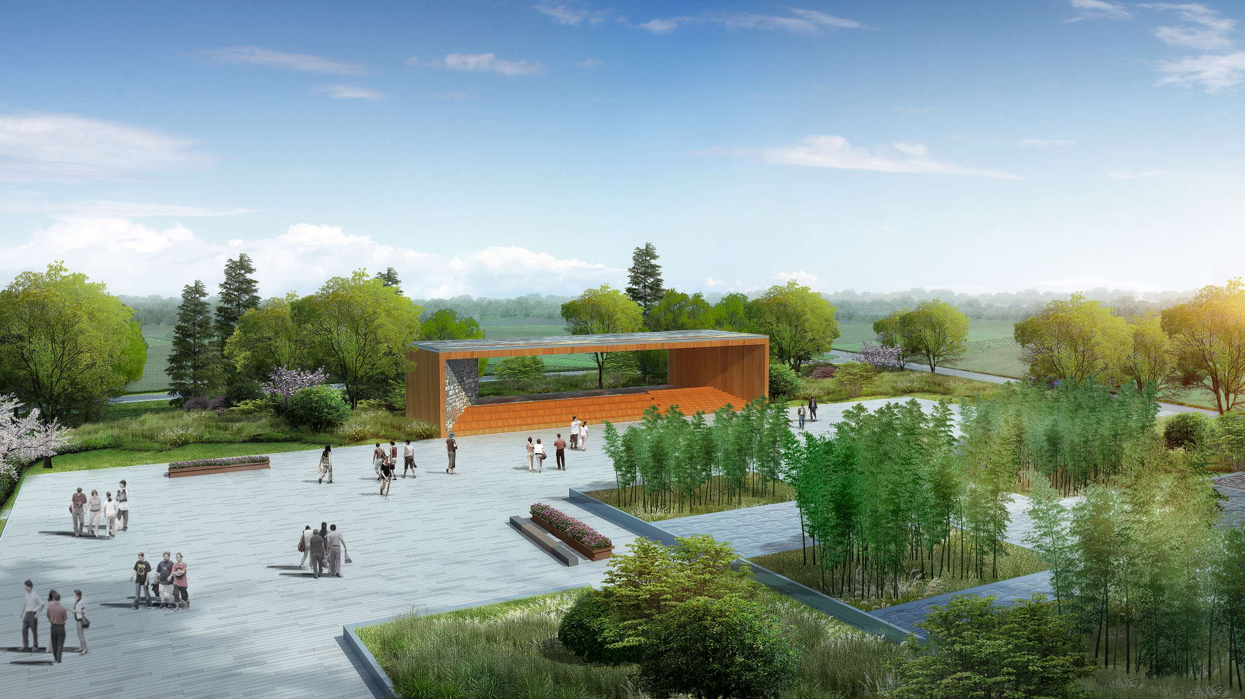 The project is located in the northwest of the central urban area, about 3 kilometers away from the business center of the west area of Luoshan County. It is connected by County Road x009 and township road Y010. It has a good ecological environment, obvious transportation advantages and great development potential. The base of this project is located in Luoshan County. Its main function is to serve the passenger flow, with the main construction purposes being to create a small activity square, a gathering and distribution area for people, and a green belt for traffic protection. The project area is located on the east side of Guishan Park, in Zone A. As the comprehensive service center of the entire park, it undertakes important functions such as park management and tourist service reception.