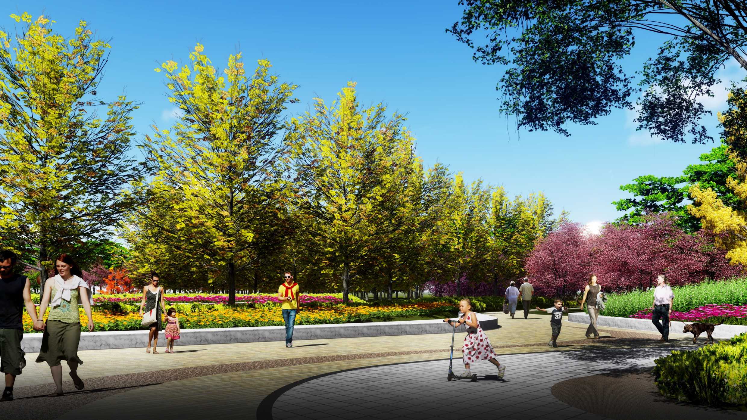 The ecological corridor of the South-to-North Water Diversion Project is divided into two parts: the ecological and cultural park (urban section) and the protective green corridor (suburban section). The planned construction length of the ecological and cultural park in the urban area is 61.7 kilometers, including 32.7 kilometers in the urban area of Zhengzhou (700 meters in the High-tech Zone, 14.7 kilometers in Zhongyuan District, 7.0 kilometers in Erqi District, and 10.9 kilometers in Guancheng District) and 29 kilometers in the Airport area. The park is planned within a 200-meter range outside the protective nets on both sides of the main canal, covering a total area of 24.68 square kilometers.