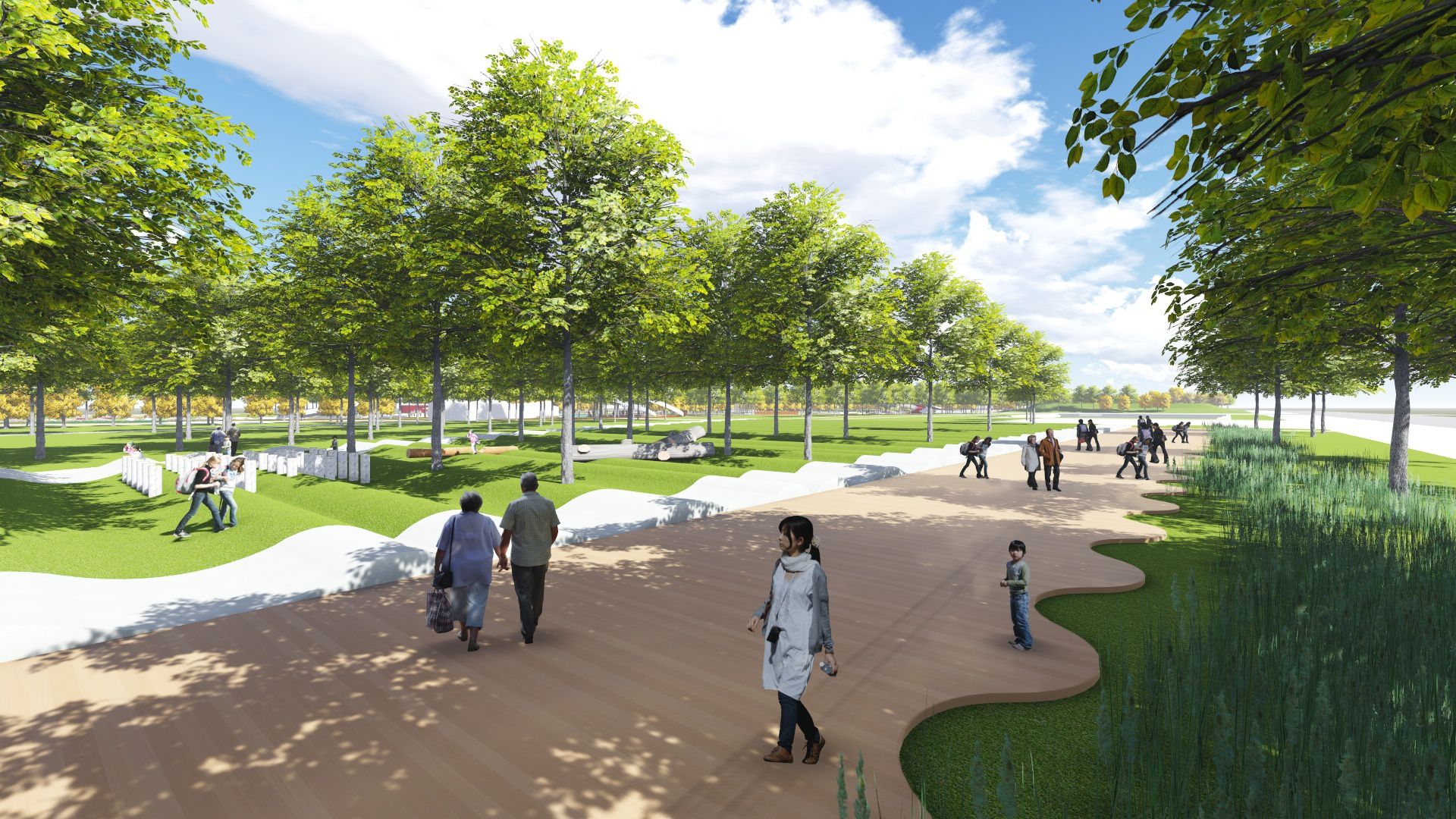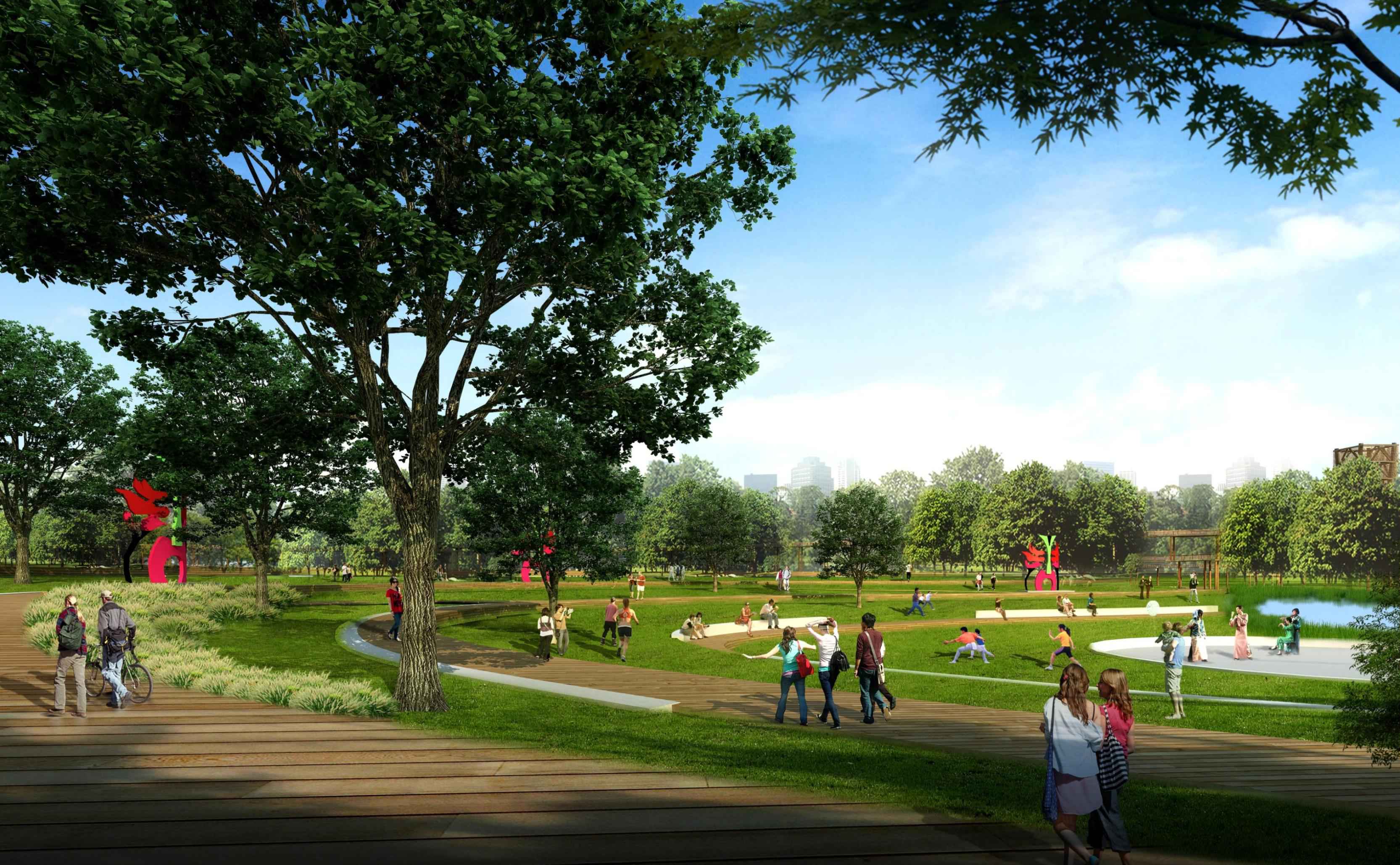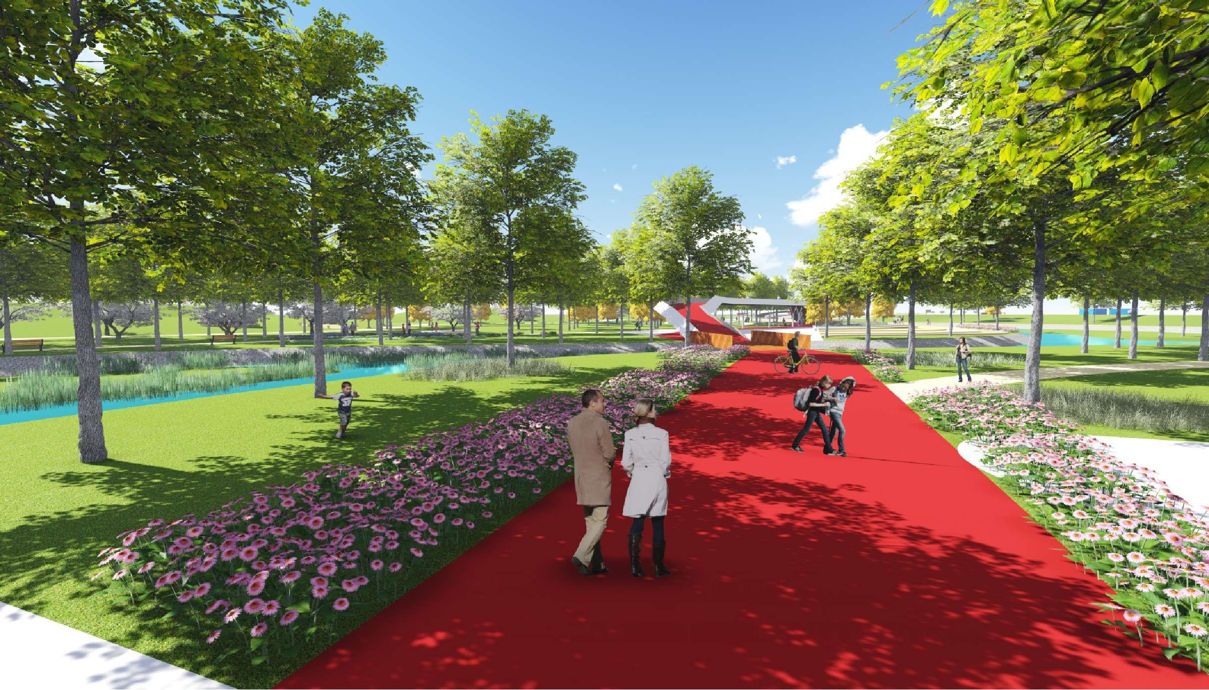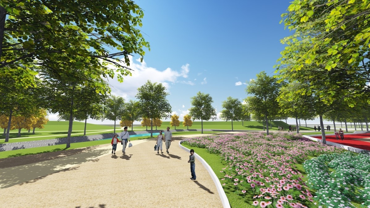 The site is located on an auxiliary axis of the north-south axis of Luoyang City. This axis connects Luoyang High-Speed Railway Station, Sizhi Canal Green Space, Luoyang Municipal Government and Municipal Square, and Sui and Tang Dynasty Ruins Park from south to north. This project is located in an important section that connects Luoyang High-speed Railway Station and Luoyang Municipal Government. The north side of the base is Luoyang Longmen High-Speed Railway Station. The current land use is classified as public green space in the urban master plan. The east and west sides are respectively commercial and residential land. The surrounding communities that have been built or are under construction include Quanshun Residential Area, Zijin Scenic Line, Fuyang International Garden, Jianye Longcheng, etc.