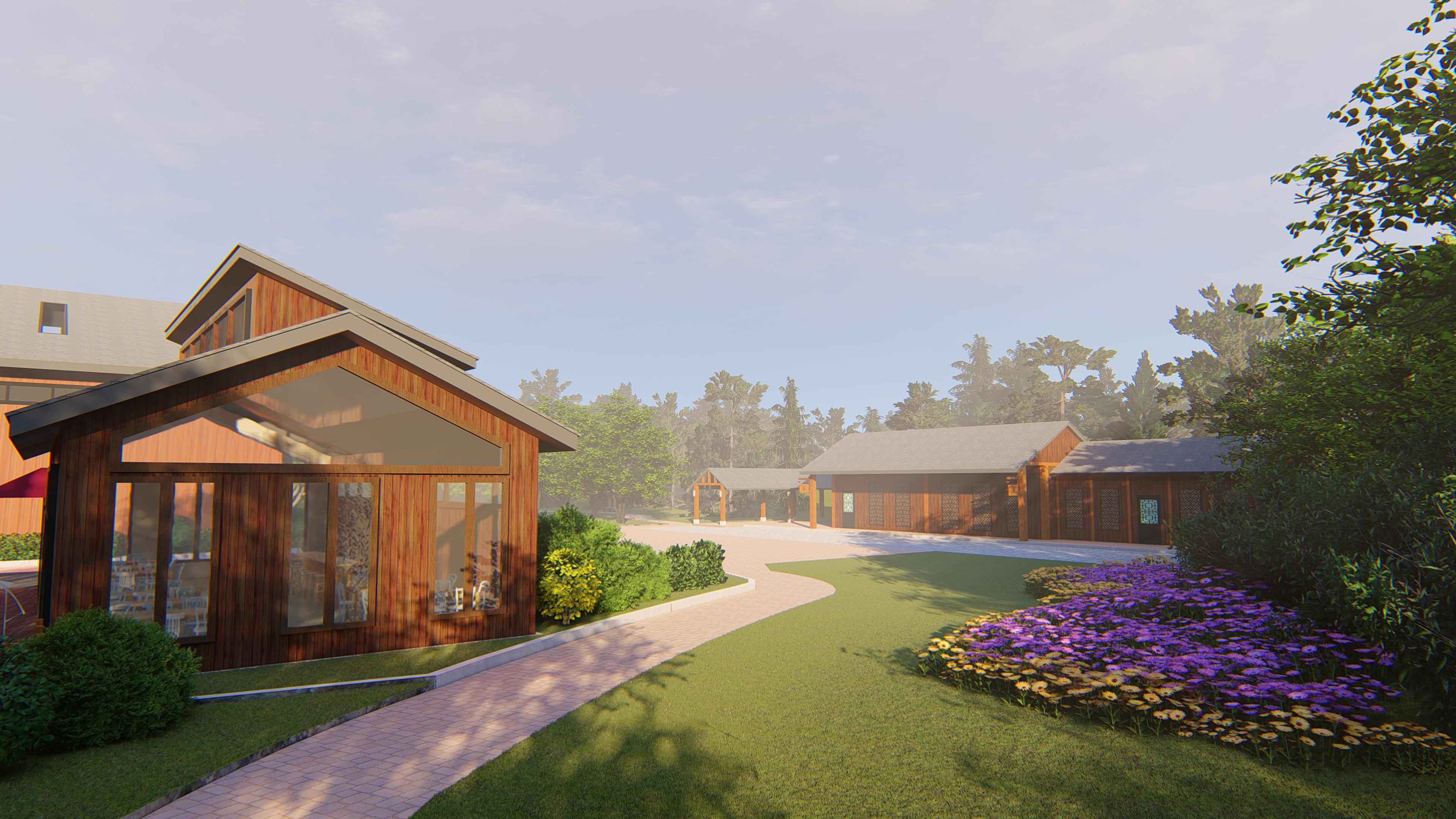Lingshan Town is located in the southeast of Xinyang City (outside the urban area), 52 kilometers away from Luoshan County. The base is located in the east of Lingshan Town, about 2 kilometers away from the town area, adjacent to Provincial Road 339, with convenient transportation and obvious geographical advantages. It covers an area of approximately 1.71 hectares. Based on the current environment and the design concept of "Zen tea aroma, ecological and humanistic", the buildings and landscapes are created in combination with the new Chinese style. In the design, the current environment and local culture are fully considered, respecting the ecology and nature. Moreover, humanistic concepts are integrated into the design elements, reflecting humanistic care everywhere. It covers functions such as parking and rest, dining and entertainment, and receiving guests for leisure.